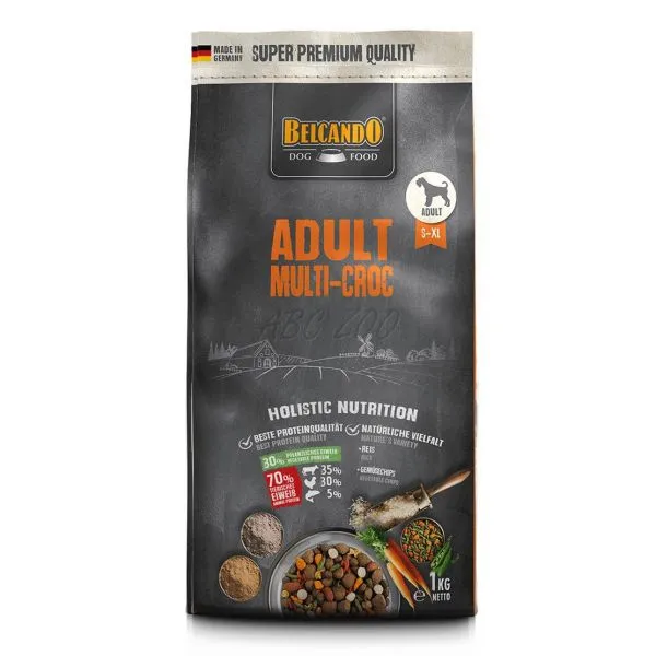 Kompletné superprémiové krmivo s vysokým podielom mäsa, cestovinami a zeleninou, určené pre dospelých psov všetkých plemien.