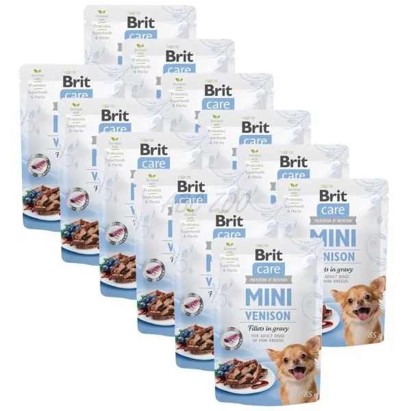 Brit Care Mini je kapsička plná filiet z mäsa z diviny v chutnej omáčke, pre dospelé psy malých plemien.