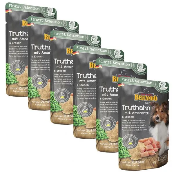 Belcando kapsička je zo šťavnatého morčacieho mäsa, kombinovaná s najkvalitnejšími ingredienciami ako amarant a hrášok.