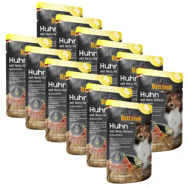 Kapsička pre psa BELCANDO- kura s ryžou, mrkvou a cukinou. Viac detailov