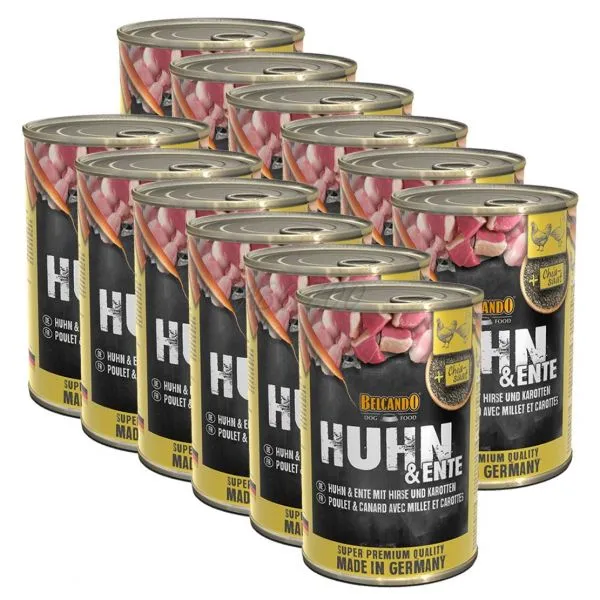 BELCANDO Kuracie a kačacie + proso a mrkva - konzerva 12 x 400g