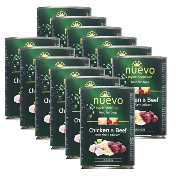 Konzerva NUEVO DOG Junior Chicken & Beef 12 x 400 g