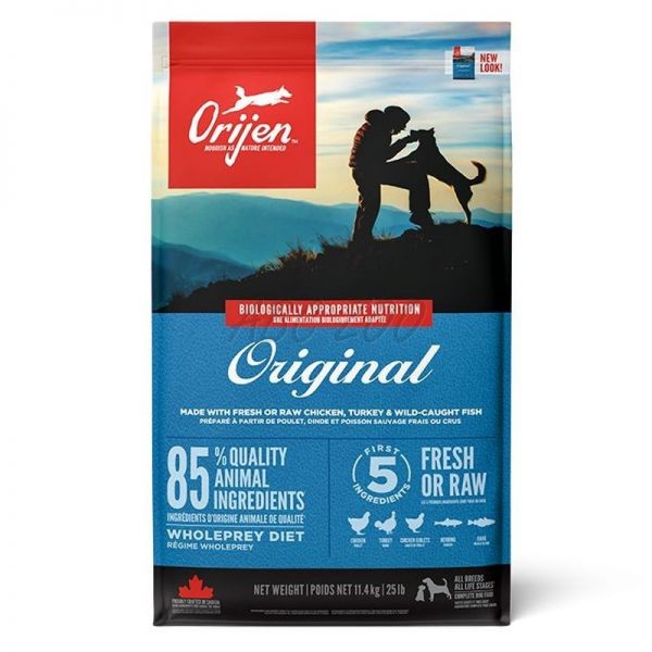 Orijen Original je bezobilne, biologické krmivo vhodné pre dospelých psov všetkých plemien, s vysokým obsahom čerstvého mäsa.