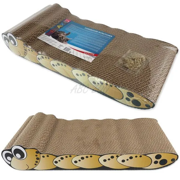Kartónové škrabadlo z recyklovanej vlnitej lepenky s kocúrnikom pre mačky.