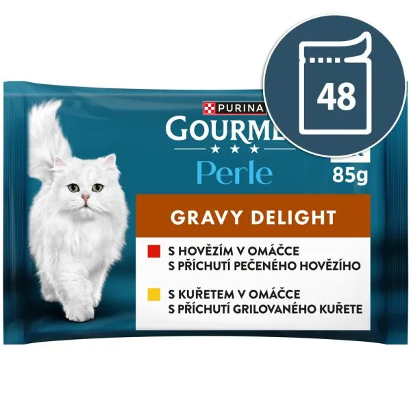 Gourmet Perle Gravy Delight kapsičky pre mačky kura, hovädzie v omáčke 48x85 g