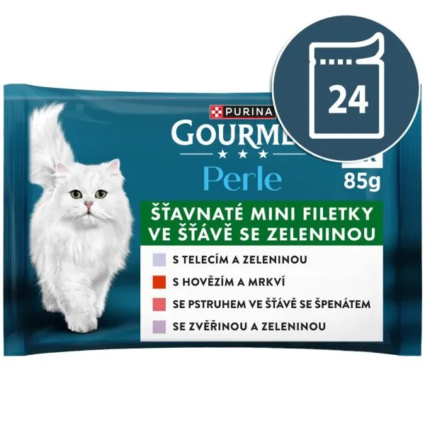 Gourmet Perle kapsičky pre mačky teľacie, divina, hovädzie, pstruh v šťave 24x85 g
