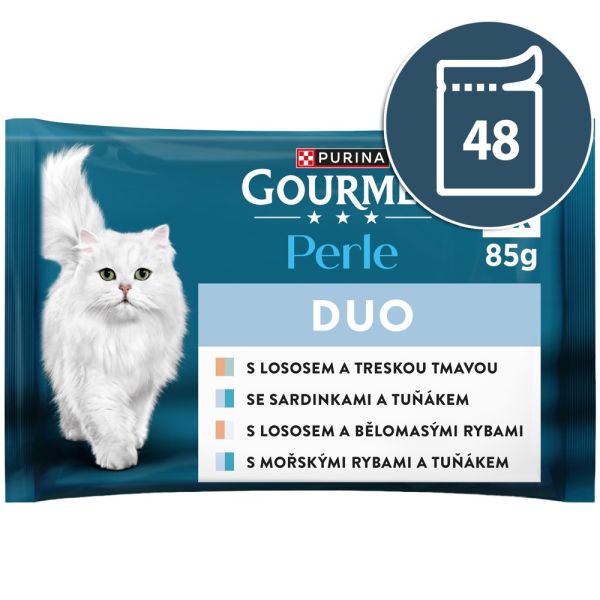 Gourmet Perle DUO kapsičky pre mačky losos a treska, morské ryby a tuniak, losos a ryby, sardinky a tuniak 48x85 g