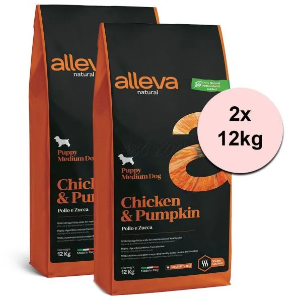 Alleva NATURAL dog chicken & pumpkin puppy medium 2 x 12 kg