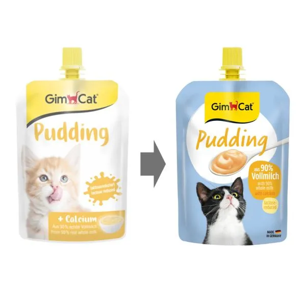 GimCat puding pre mačky je skutočnou lahôdkou z hodnotného plnotučného mlieka so zníženým obsahom laktózy.