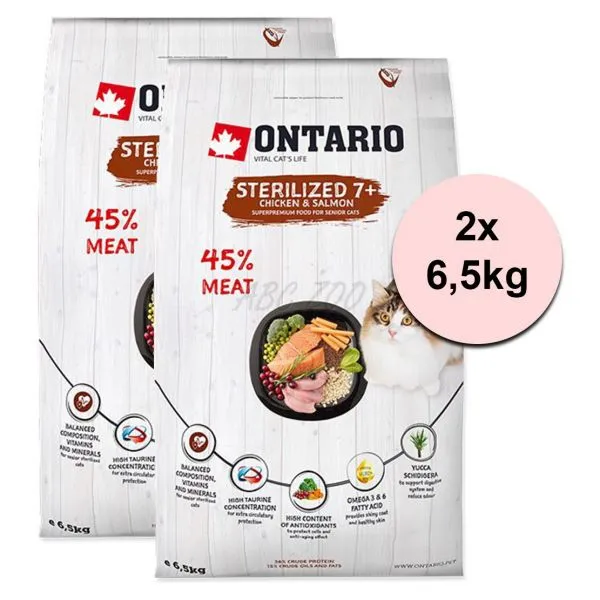 Ontario Cat Sterilised 7+, 2 x 6,5 kg