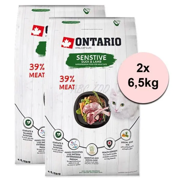 Ontario Cat Sensitive Duck & Lamb 2 x 6,5 kg