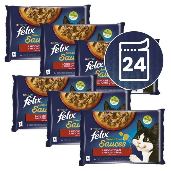 FELIX® Sensations® Sauces je rad neodolateľných krmív vyrobených z kvalitných surovín, ktoré výborne vyzerajú, voňajú a samozrejme lahodne chutia vašej mačke. Každé krmivo FELIX Sensations Sauces obsahuje krehké kúsky pre potešenie vašej mačky servírované v rôzne ochutených omáčkach pre mimoriadnu chuť a lákavú vôňu. Zároveň sú zdrojom omega-6 mastných kyselín a majú správnu kombináciu vitamínov, aby udržali vašu mačku plnú energie a pripravenú na neplechu! Sú plné dobrôt a uspokoja 100 % denných potrieb vašej mačky, keď sú podávané podľa návodu na kŕmenie. To nie je všetko! FELIX Sensations Sauces sú dostupné v celom rade kombinácií chutí v neodolateľných omáčkach! Takže, ak máte to šťastie mať tak senzačnú mačku ako je FELIX, uspokojte každý deň jej lásku po rozmanitosti s krmivom FELIX Sensations Sauces! FELIX je jednoducho neodolateľný!