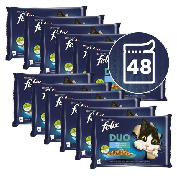 Felix Fantastic DUO kapsičky pre mačky treska a losos, losos a sardinky, sleď a pstruh, pstruh a makrela 48x85 g