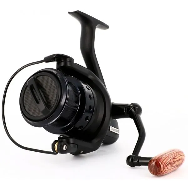 Veľkokapacitný navijak s prednou brzdou určený pre lov kaprov. Je spoľahlivý a odolný, zvládne akékoľvek podmienky. Vodeodolné odľahčené telo vyrobené z kompozitu čierneho grafitu v matnom elegantnom dizajne. Vysoká alumíniová cievka v prevedení long cast, počítačom vyvážený rotor, antireverz spätného chodu, protiskrutná veľká rolnička, precízna plynulá mikrometrická brzda, krížové navíjanie S cross, systém pomalej dvojitej oscilácie, pevná odolná kľučka s drevenou koncovkou, spevnený preklápač, nerezové ložiská.