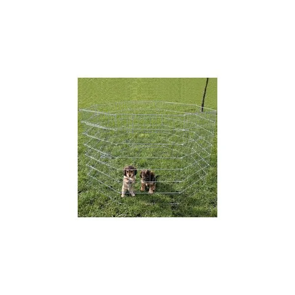 Pozinkovaná ohrádka s dvierkami. Skladá sa z ôsmich dielov o veľkosti 60 x 91 cm. Výška ohrádky je 91 cm, priemer 1,5m.
