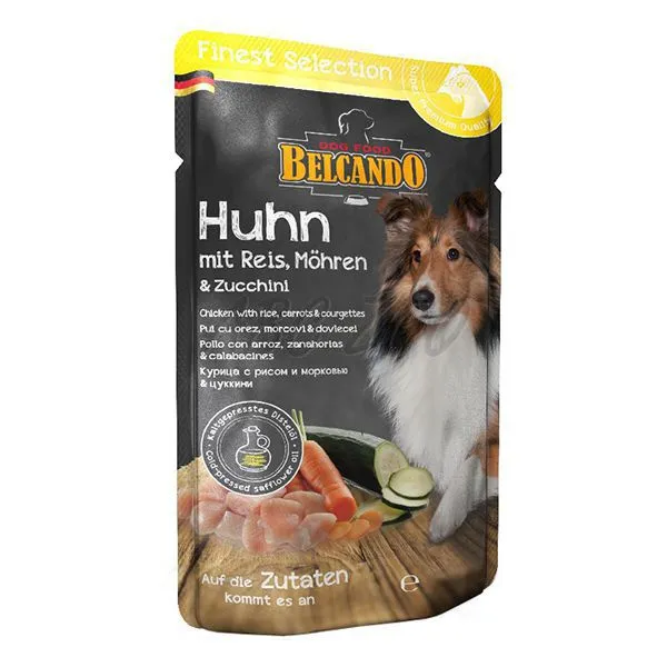 Kapsička pre psa BELCANDO- kura s ryžou, mrkvou a cukinou. Viac detailov