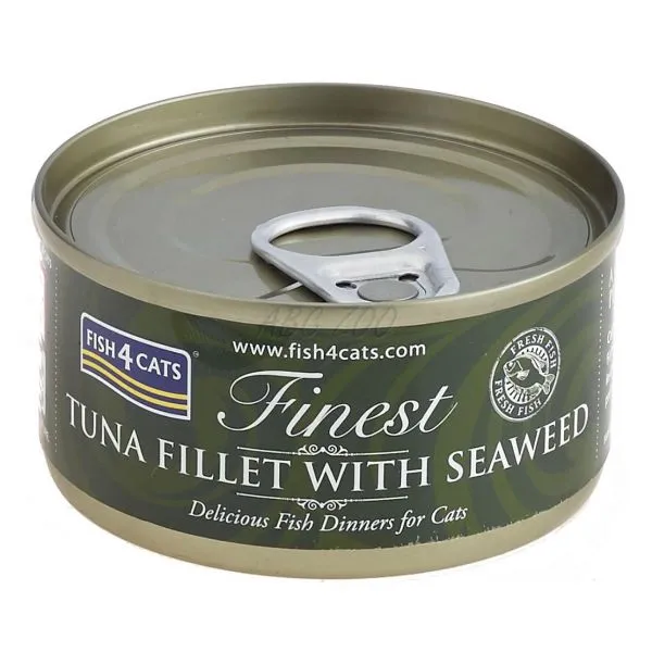 Fish4cats je jemné mäso z tuniaka a morských rias v konzerve pre mačky.