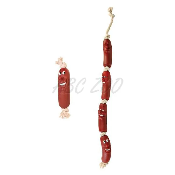 Gumená hračka pre psíka usmievavé klobásy na lane. Viac detailov