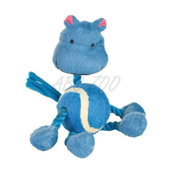 Plyšová hračka pre psíka, zvieratko na lane, v strede tenisová loptička.