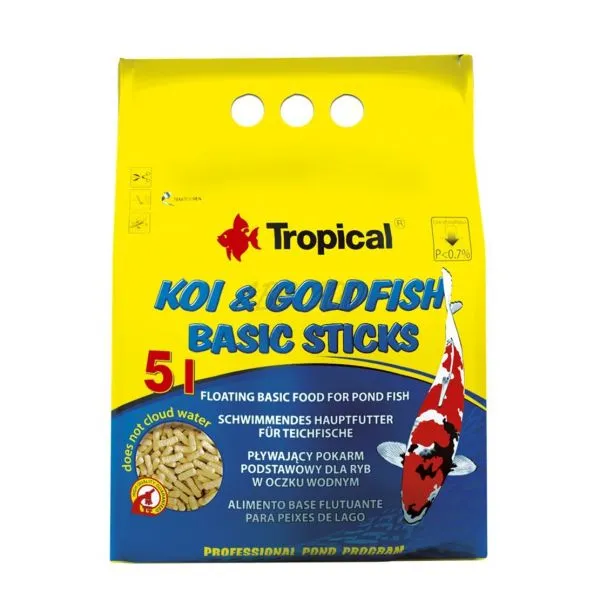 Štruktúra tyčiniek spôsobuje, že krmivo sa udržuje dlho na hladine vody. Uľahčuje to pozorovanie žerúcich rýb a umožňuje kontrolovať množstvo nimi prijímanej potravy. Nadbytok tyčiniek je možné ľahko odstrániť z jazierka pomocou sieťky na ryby. Bohatá receptúra krmiva uspokojuje pokrmové požiadavky rýb zabezpečujúc im dokonalú kondíciu a rovnomerný rast. Doporučujeme kombinovanie krmiva Basic Sticks s inými krmivami zo série Koi&Goldfish, ktoré sa dokonale dopĺňajú, tvoriac bohatú a rôznorodú diétu pre kaprovité ryby.
