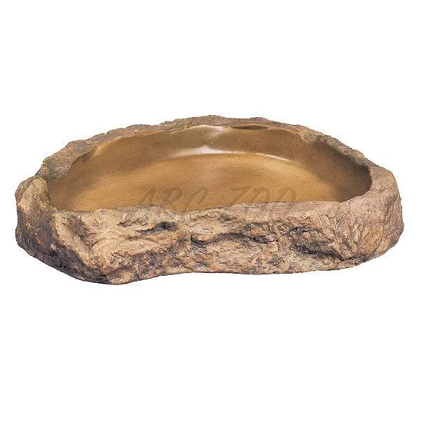 Miska Exo Terra má veľmi prirodzený a realistický vzhľad skaly na vonkajšej strane a hladký povrch na strane vnútornej. Miska je potiahnutá povlakom, vďaka ktorému sa zabráni bujneniu škodlivých baktérií a ľahko sa čistí. Neporézny a hladký povrch neabsorbuje škodlivé baktérie. Zhotovené zo živice schválenej pre potravinárstvo. Veľmi stabilná, ani väčšie plazy ju neprevrhnú.