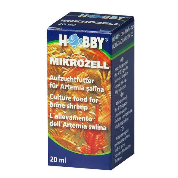 Hobby Mikrozell 20ml - plnohodnotné krmivo pre artémie od 8-10 dňa života. Obsahuje čiastočky phyto-planktonu.