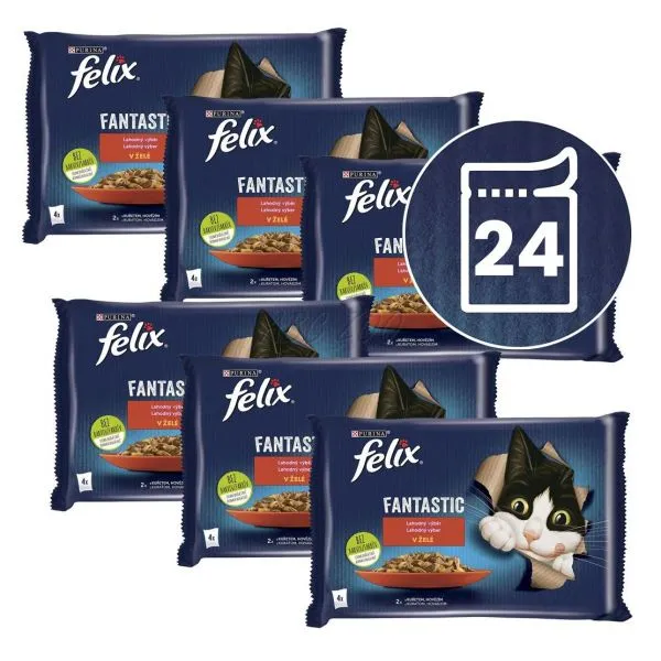 FELIX Fantastic je rad neodolateľných krmív, ktoré vyzerajú, voňajú a chutia tak lahodne ako jedlo, ktoré by ste sami uvarili! Každá receptúra, vyrobená z kvalitných surovín, obsahuje krehké kúsky v želé, aby sa vaša mačka mohla do chutného krmiva poriadne zahryznúť! Zároveň sú zdrojom omega-6 mastných kyselín a majú správnu kombináciu vitamínov, aby udržali vašu mačku plnú energie a pripravenú na neplechu! Sú plné dobrôt a uspokoja 100 % denných potrieb vašej mačky, keď sú podávané podľa návodu na kŕmenie. To nie je všetko! FELIX Fantastic je dostupný v celom rade lahodných receptúr v šťavnatom želé, aby každý deň uspokojil lásku vašej mačky po rozmanitosti. Skutočne chutia tak dobre, ako vyzerajú! FELIX je jednoducho neodolateľný!