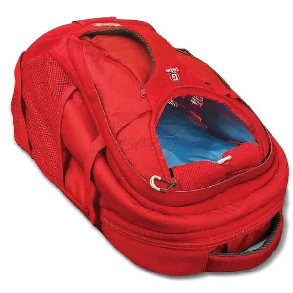 • je vybavený samostatnou polstrovanou priehradkou pre notebook, dvoma držiakmi fľašiek na boku a vreckami na zips