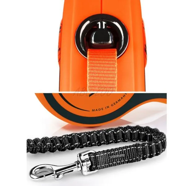 Samonavíjacie vodítko v oranžovej farbe, pre veľké plemená psov do 65kg (L), s 5m popruhom.