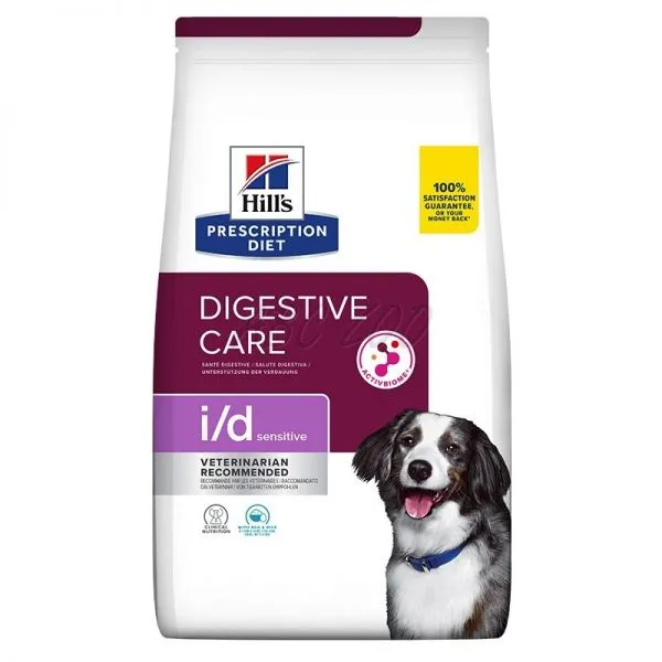Hill's PRESCRIPTION DIET i/d Sensitive Dog Food je kompletné a vysoko stráviteľné krmivo pre psov pre zníženie intolerancie ingrediencií a živín. Toto krmivo pre psy pre starostlivosť o trávenie tiež znižuje poruchy vstrebávania živín u psov. PRESCRIPTION DIET i/d Sensitive má zvýšený obsah sodíka a draslíka, vysoko stráviteľné zložky a obsahuje vybraný zdroj sacharidov a vybrané zdroje bielkovín. Toto suché krmivo pre psov sa vyrába z vajec a ryže a má lahodnú chuť, ktorú si váš pes zamiluje.