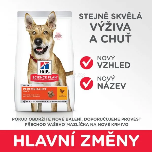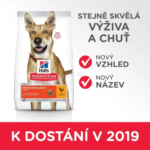 Hill's Science Plan Performance krmivo pre dospelých psov s kuraťom má zloženie pre naplnenie vysokých energetických nárokov aktívnych, pracovných a loveckých psov. Granule s vysokou koncentráciou energie.