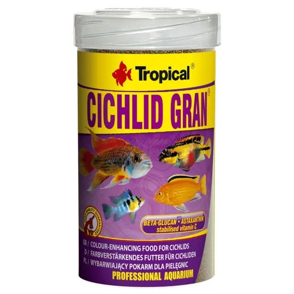 Základné, mnohozložkové krmivo intenzifikujúce farby rýb vo forme ponárajúceho sa granulátu. Cichlid Gran je určené pre denné kŕmenie všežravých cichlíd, medzi nimi veľa druhov papuľovcov z jazera Malawi.