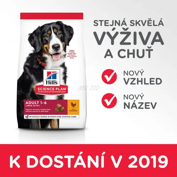 Veľké psy majú špecifické nutričné potreby, preto má Hill's Science Plan krmivo pre dospelých psov veľkých plemien s kuračom špeciálne zloženie pre naplnenie energetických potrieb psov veľkých plemien behom najlepších rokov života. Toto krmivo pre veľkých dospelých psov je vyrobené z vysoko kvalitných, ľahko stráviteľných ingrediencií, obsahuje vysoko kvalitné bielkoviny pre tvorbu svalovej hmoty, ďalej glukozamín a chondroitin pre zdravé kĺby a mobilitu. Vyvážená zmes omega-6 a vitamínu E vyživuje kožu pre zdravú a lesklú srsť. S novým vzhľadom Science Plan sa máte na čo tešiť. Niektoré naše produkty teraz naviac majú nové meno, tvar granúl a receptúru.