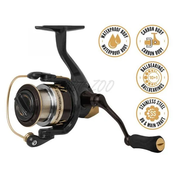 Zlaté doplnky podčiarkujú luxusný dizajn navijaka s hmotnosťou “pierka“, vďaka ktorému zabudnete, že v rukách držíte rybárske náradie.