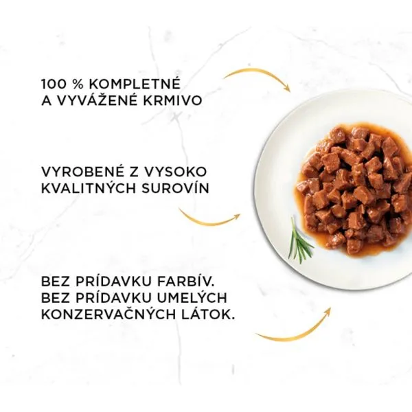 Šťavnaté mäsové kúsky v omáčke, pre dospelé mačky všetkých plemien vo výhodnom balení 12 x 85g.