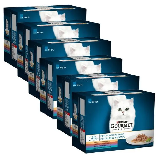 GOURMET™ Perle Mini filetky v šťave sú zo starostlivo vybraných surovín, ľahko povarených tak, aby si zachovali vynikajúcu chuť, nakrájaných na jemné kúsky a servírovaných v lahodnej šťave, aby uspokojili vycibrenú chuť vašej mačky. GOURMET™ Perle Mini filetky v šťave sú jednoduché a rafinované krmivá pre každodenný neodolateľný chuťový zážitok.