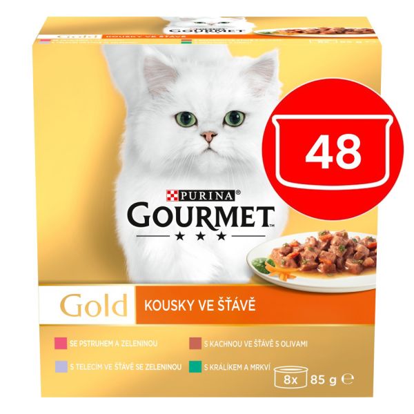 Gourmet Gold konzervy pre mačky kačica, pstruh, králik, teľacie v šťave 48x85 g