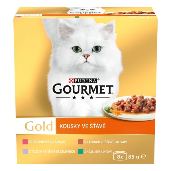 Gourmet Gold konzervy pre mačky kačica, pstruh, králik, teľacie v šťave 8x85 g