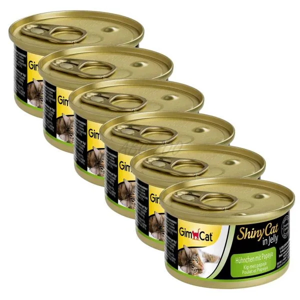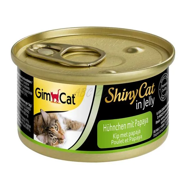 Prírodná chutná konzerva z jemne nakrájaného kuracieho mäsa s papájou v želé pre dospelé mačky.
