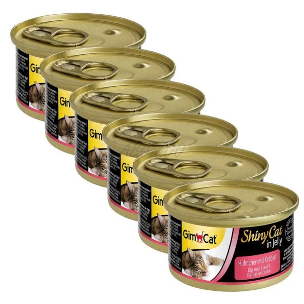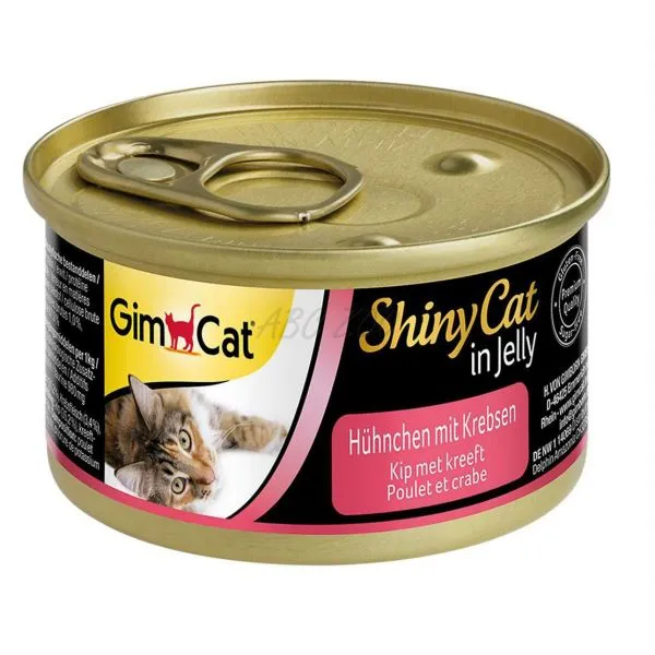 Prírodná chutná konzerva z jemne nakrájaného kuracieho mäsa s krabom v lahodnom želé pre dospelé mačky.