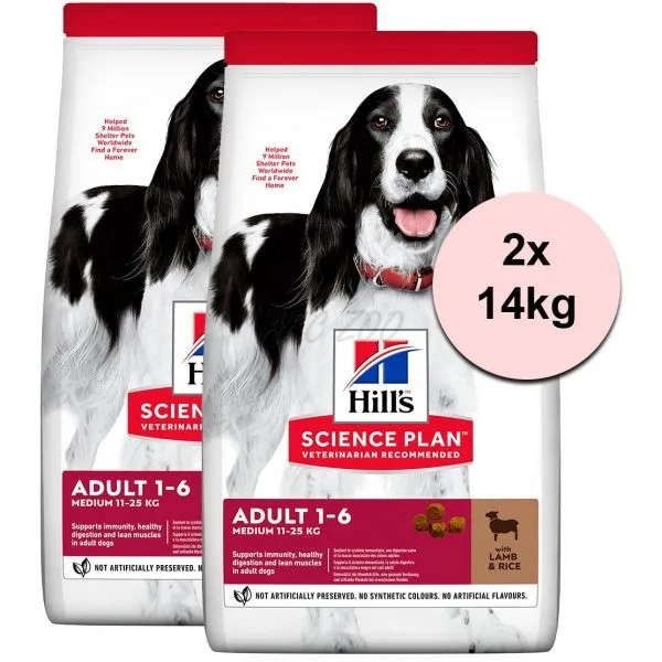 Hill's Science Plan pre stredné dospelé psy s jahňacím a ryžou 2 x 14 kg