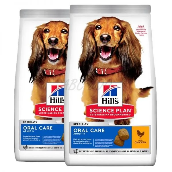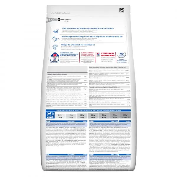 Hill's Science Plan Oral Care krmivo pre dospelých psov s kuraťom má klinicky preukázanú technológiu granúl redukujúcu zubný povlak a zubný kameň.
