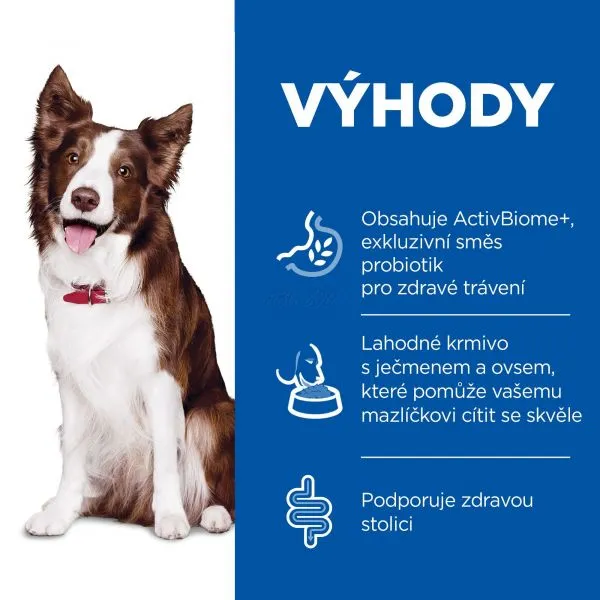 Krmivo Hill's Science Plan Perfect Digestion pre dospelých psov stredných plemien s kuraťom a hnedou ryžou obsahuje ActivBiome+, exkluzívnu zmes prebiotík spoločnosti Hill's, ktorá pomáha rýchlo vyživovať a vyvažovať jedinečný mikrobióm vášho zvieraťa.