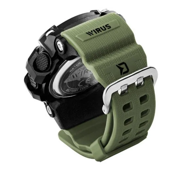 Hodinky Delphin WIRUS okrem bežnej indikácie času disponujú niekoľkými skvelými funkciami ako budík, časovač, stopky, voliteľný 12 a 24H formát či duálny čas. Taktiež je možné pomocou tlačítka Light podsvietenie 13-číselného LCD displeja, vďaka čomu nestratíte pojem o čase ani počas nočných rybačiek, či iných aktivít.