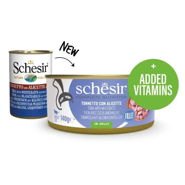 Schesir konzerva pre dospelé mačky s tuniakom a sleďom v želé. Viac detailov