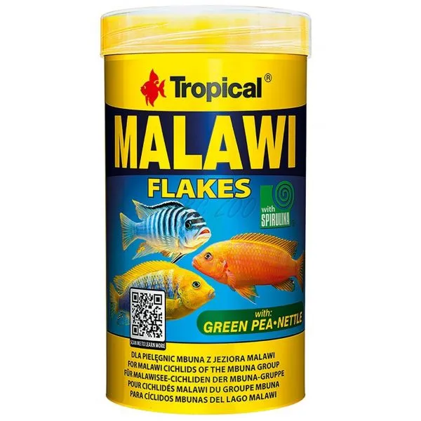 Mnohozložkové, vločkové krmivo s veľkým obsahom rastlinných zložiek (špenát, žihľava, spirulina, pšeničné zárodky atď.) určené pre denné kŕmenie papuľovcov mbuna z jazera Malawi.