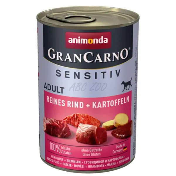 Animonda GranCarno Sensitiv Adult je konzerva s hovädzím mäsom a zemiakmi pre dospelé psy všetkých plemien s citlivým trávením.
