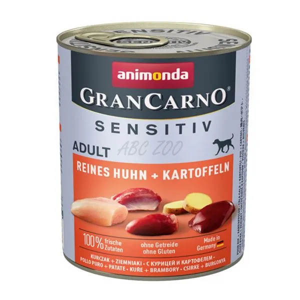 Animonda GranCarno Sensitiv Adult je konzerva s kuracím mäsom a zemiakmi pre dospelé psy všetkých plemien s citlivým trávením.