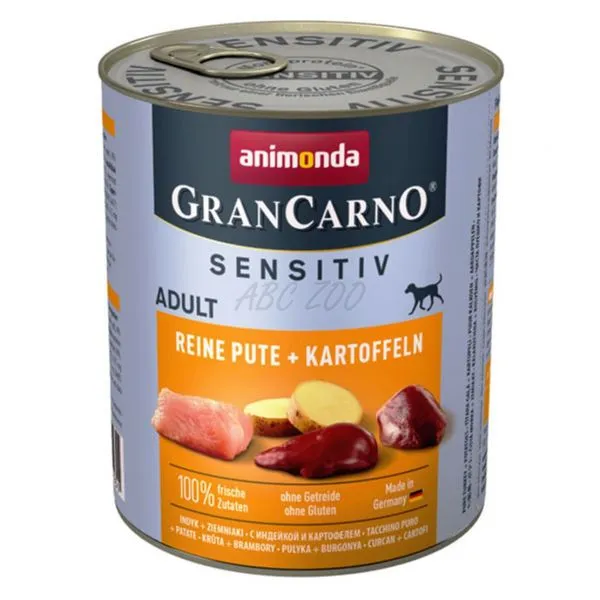 Animonda GranCarno Sensitiv Adult je konzerva s morčacím mäsom a zemiakmi pre dospelé psy všetkých plemien s citlivým trávením.