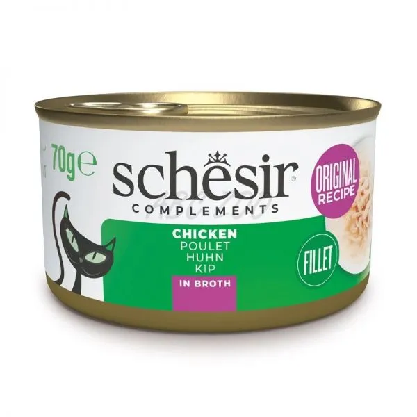Schesir je lahodná konzerva pre dospelé mačky, plná kuracieho mäsa vo vlastnom vývare.